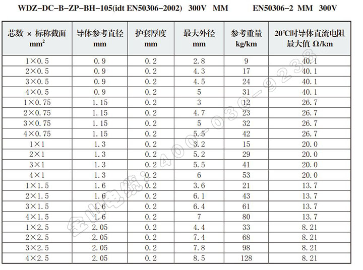 低煙無鹵薄壁鐵道客車用電纜(單芯)產品參數